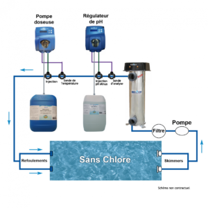 - une pompe doseuse, également placée sur le circuit de traitement d’eau du bassin, vient parfaire la désinfection de l’eau,