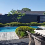 Grâce à son escalier de coin cette piscine est le centre sportif des amateurs de la natation.