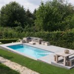 - Forme piscine rectangulaire équipée d’un escalier de coin
