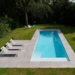 - Forme: piscine rectangulaire avec escalier de coin de 6 marches.