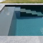 - Première marche “Plage” d’une profondeur de 20cm s’étendant sur toute la largeur du bassin