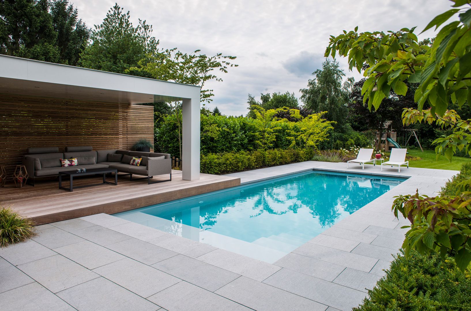 • un espace de repos sur toute la largeur de la piscine