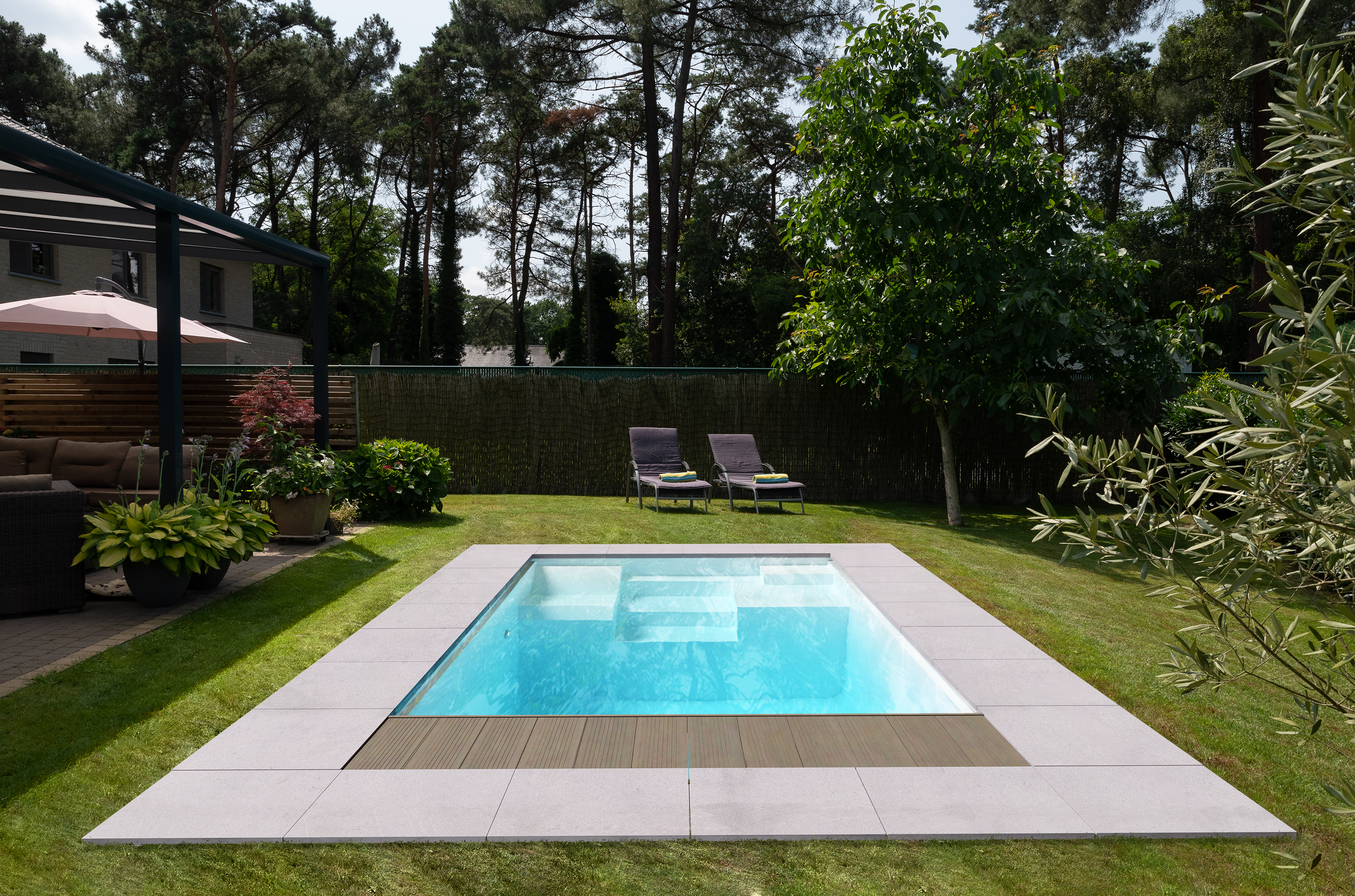 - Options pour couverture: volet automatique de Covrex®, terrasse mobile WaluDeck ou une couverture de sécurité